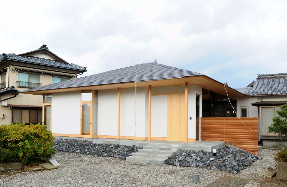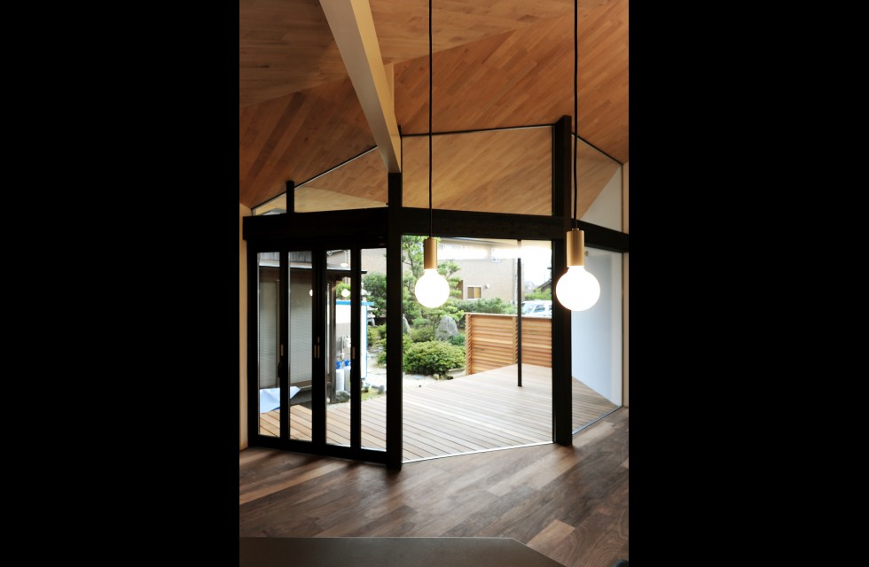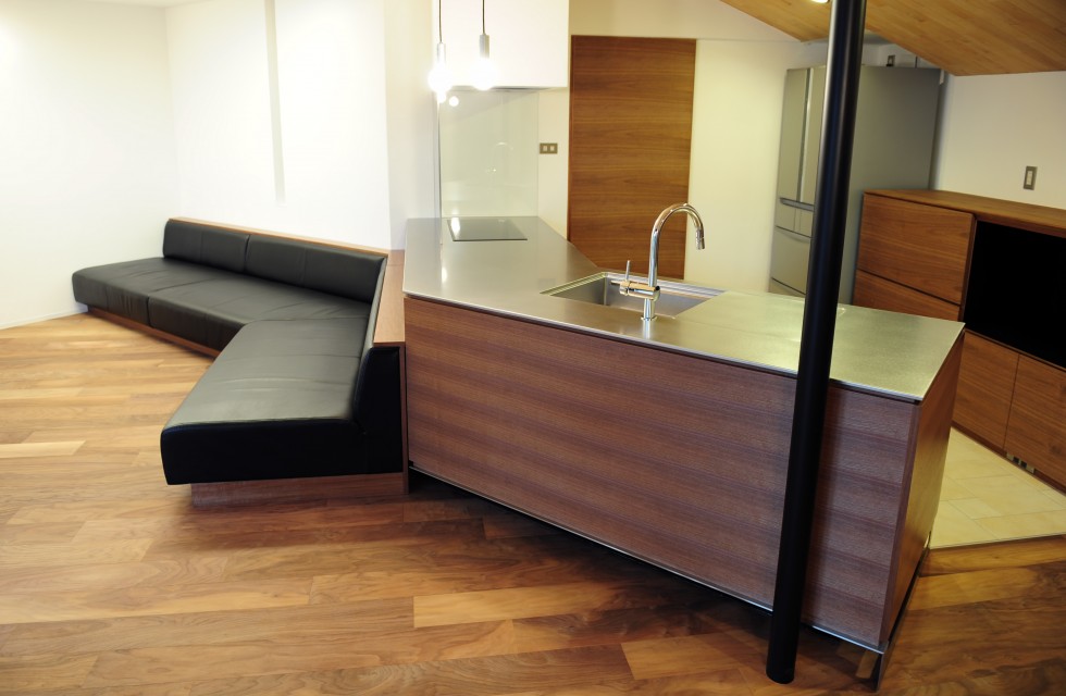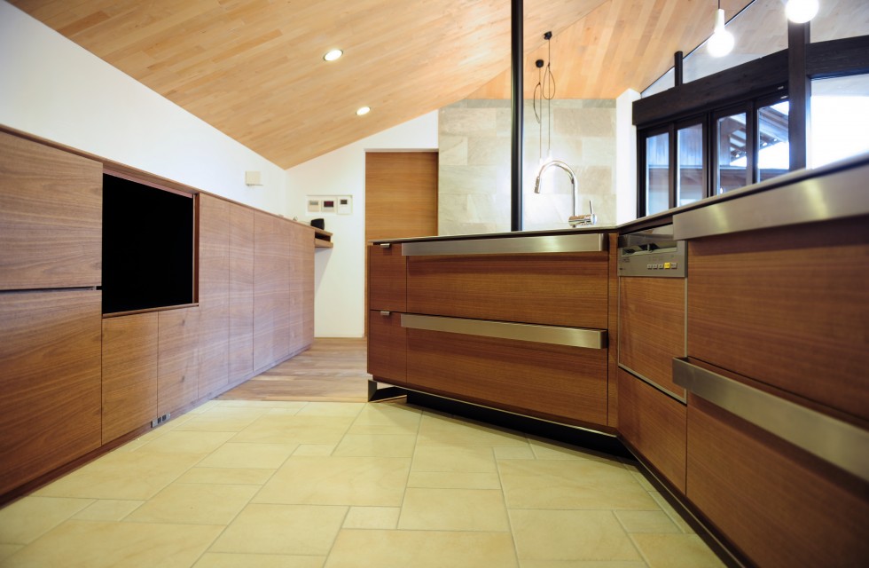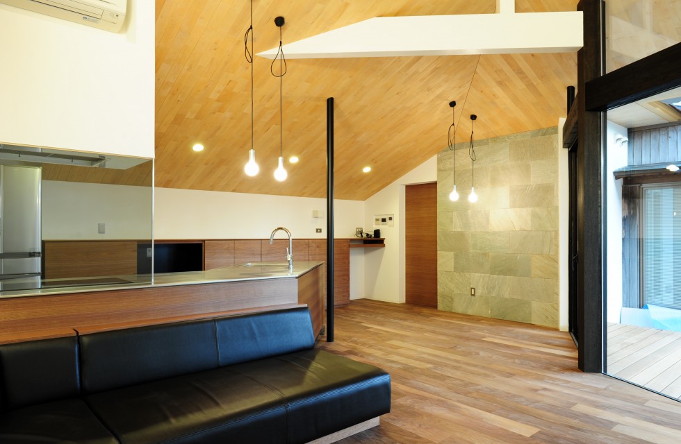 あわら市 F邸 2014.04.30 物件概要 場所 福井県あわら市下番 用途 住宅 種別 新築 規模 129.20㎡(39坪) ご夫婦とお子様が暮らすF様邸。見どころは、ウォールナットで造作したV型のキッチンや、リビングの形状に合わせてつくったソファ。壁は漆喰塗り、天井にカバを用いるなど素材にも気を使っています。また、玄関から和室までのアプローチに用いた笏谷(しゃくだに)石は既存住宅の部材を再利用しています。 Next > < Prev WORKS