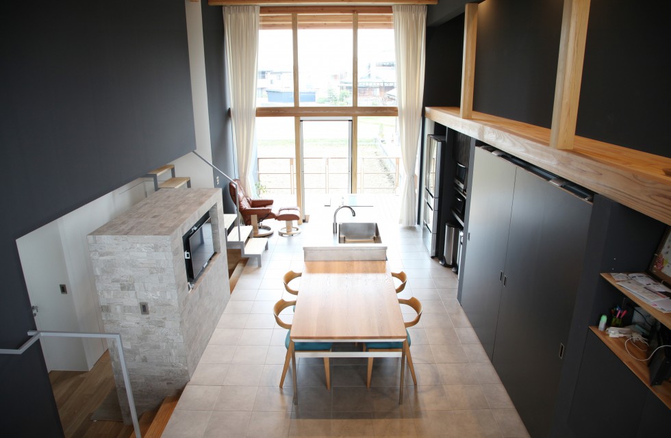 福井市 K邸 2015.04.25 物件概要 場所 福井市和田中 用途 住宅 種別 新築 規模 139.66㎡(42.3坪) 長い奥行のLDKが特徴のK様邸。ダイニングとリビングの間に高低差をつけることで、ワンフロアの中にちょっとした別空間が生まれました。天井の梁などを見せることで、黒い壁の重厚感だけでなく、自然素材のあたたかみも感じれる空間に仕上がりました。 Next > < Prev WORKS